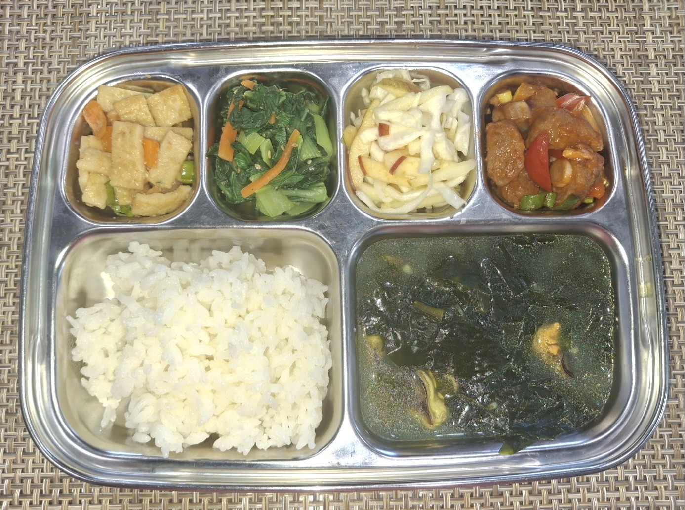 점 심 ~ 흰쌀밥, 홍합미역국, 파프리카미트볼조림, 청경채나물,어묵야채볶음, 양배추사과샐러드