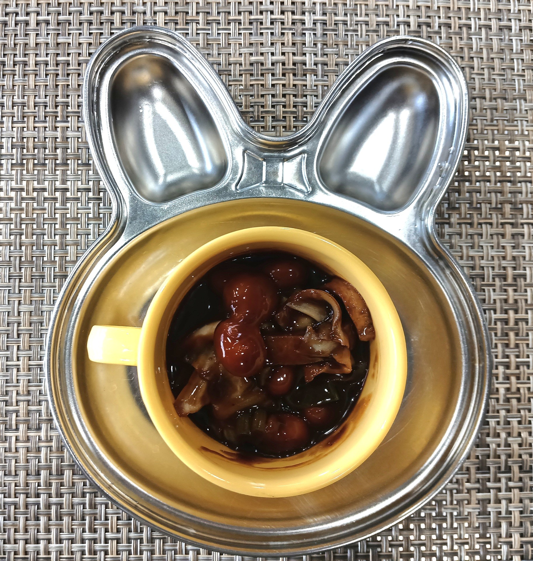 점 심 ~ 흑미밥, 유부무채다시마국, 오리훈제단호박찜, 미역오이초무침, 토마토스파게티, 홍시깍두기