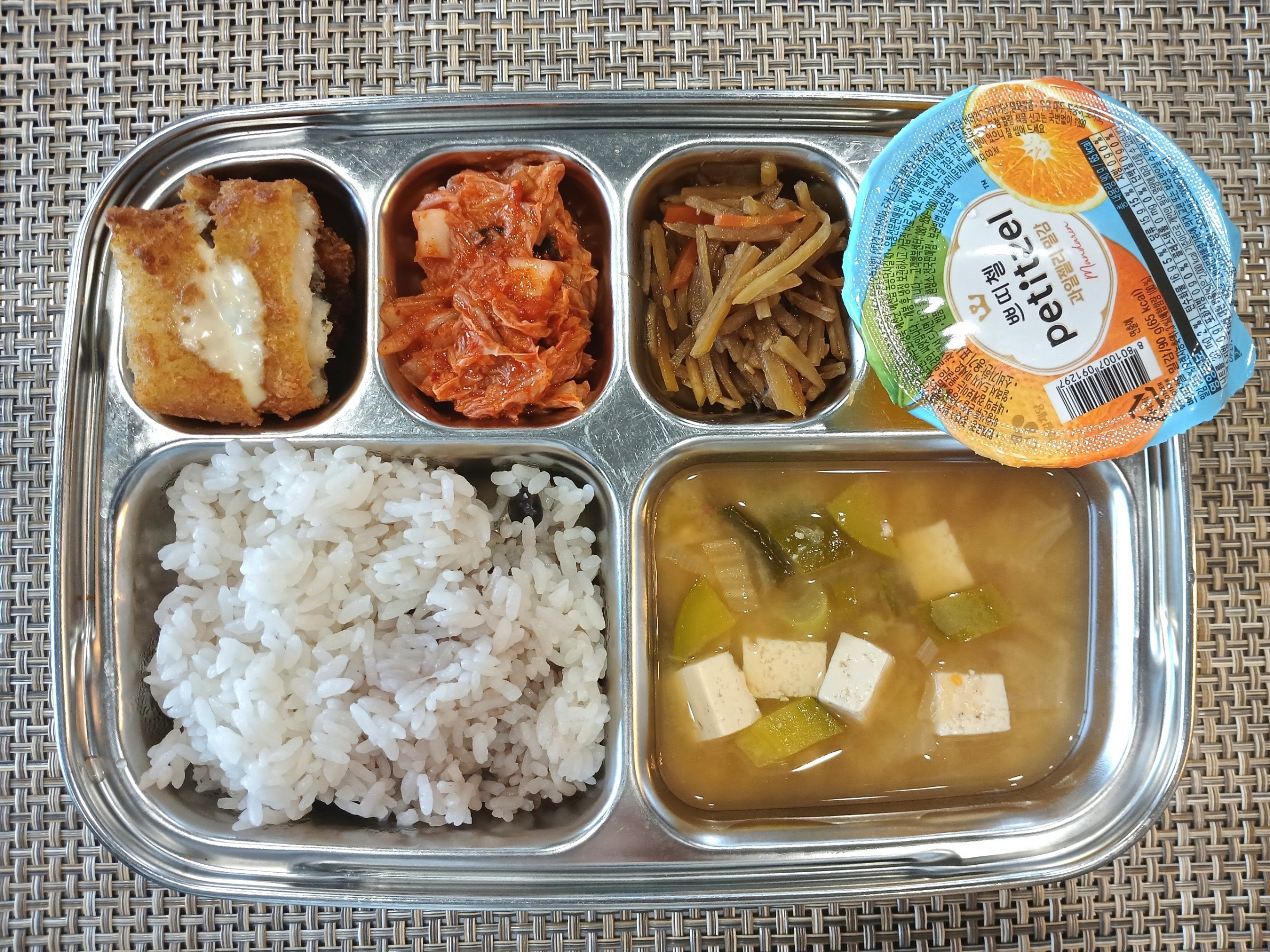 점 심 ~ 서리태콩밥, 청국장, 생선까스*타르타르소스, 우엉채조림, 과일푸딩(밀감맛), 배추김치