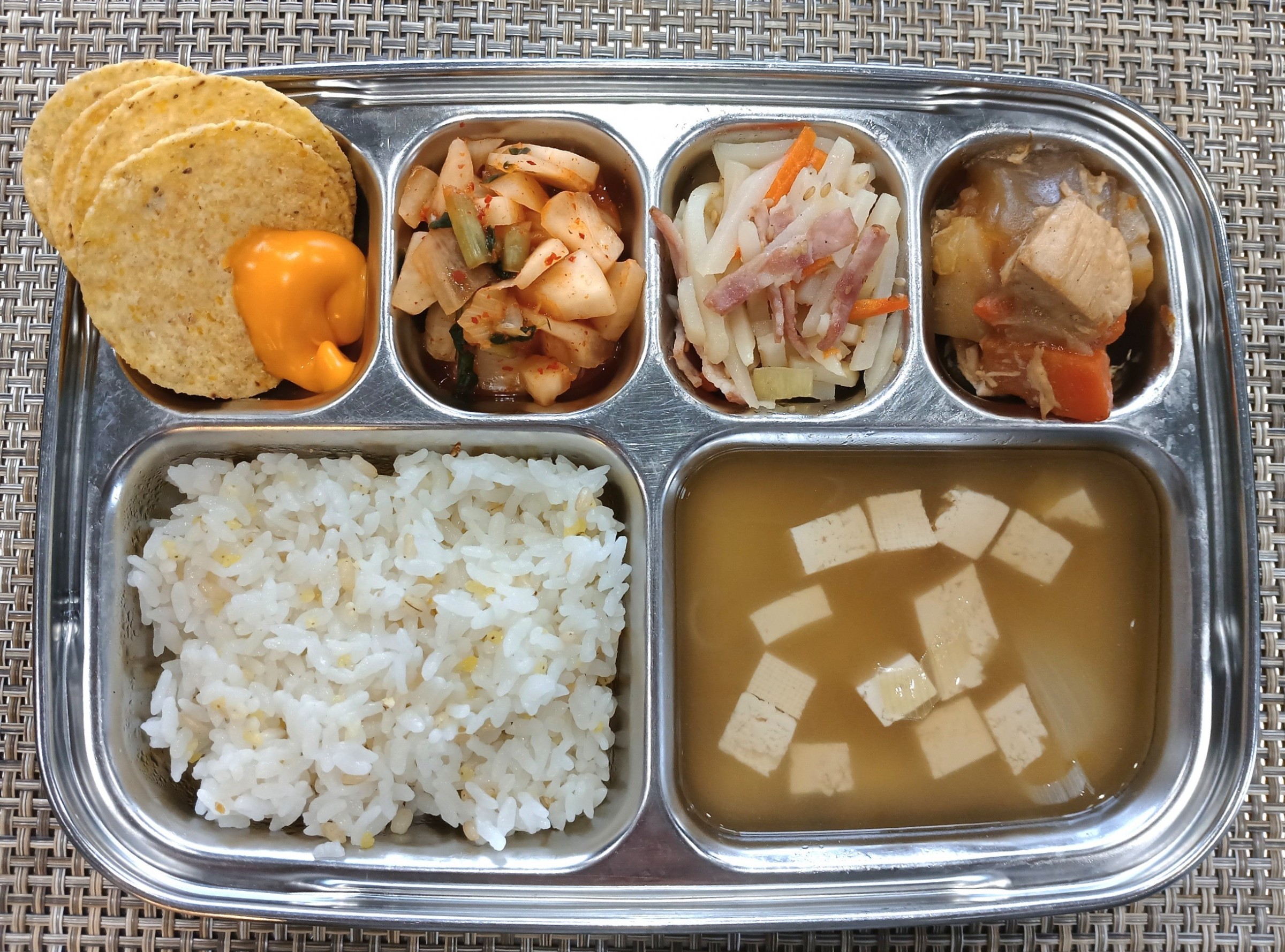 점 심 ~ 혼합잡곡밥, 미소두부된장국, 안동찜닭, 베이컨감자채볶음, 나쵸*치즈, 총각김치