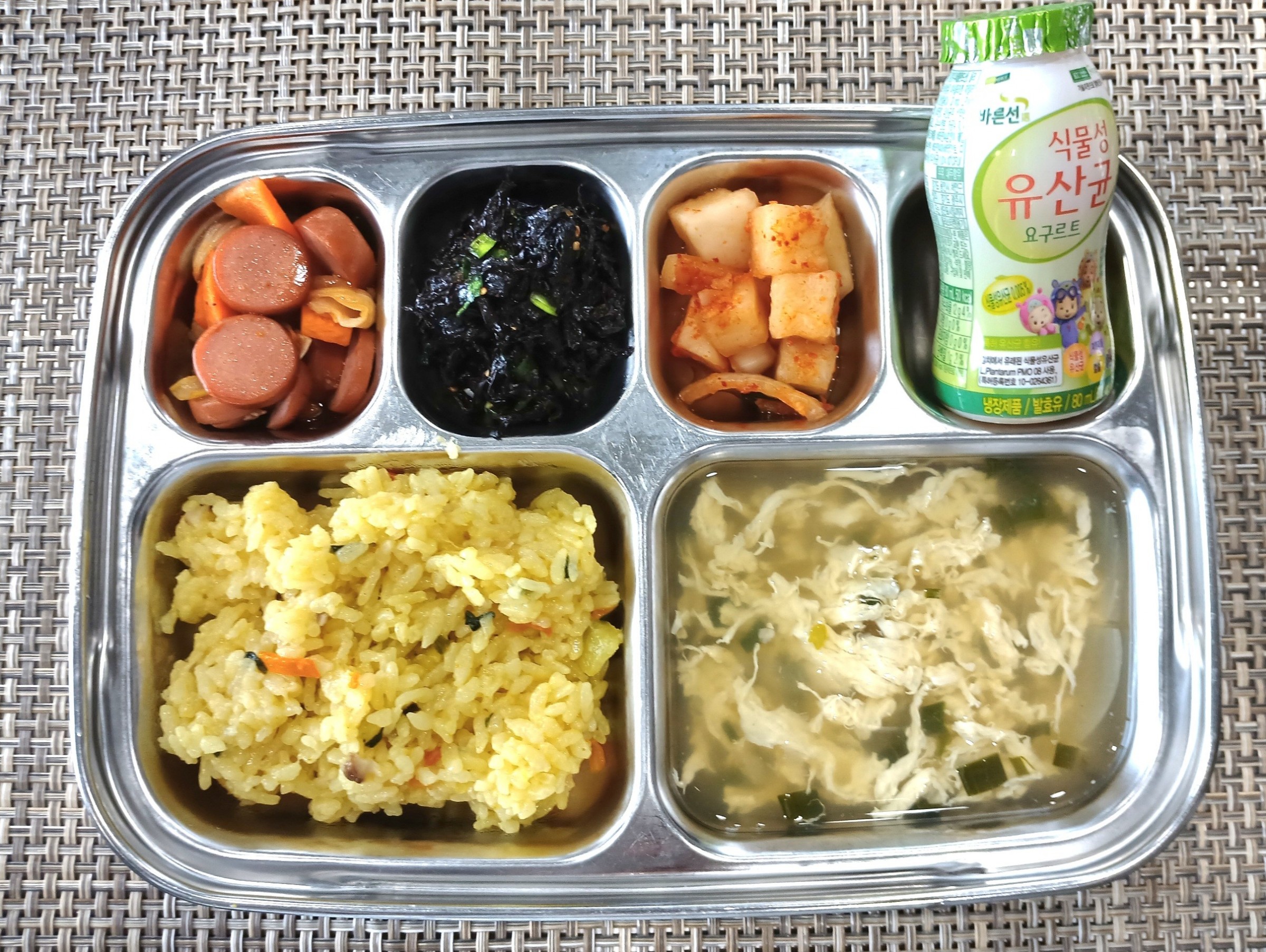 점 심 ~ 영양카레밥, 계란파국, 건파래간장양념무침, 소세지야채볶음, 요구르트, 깍두기