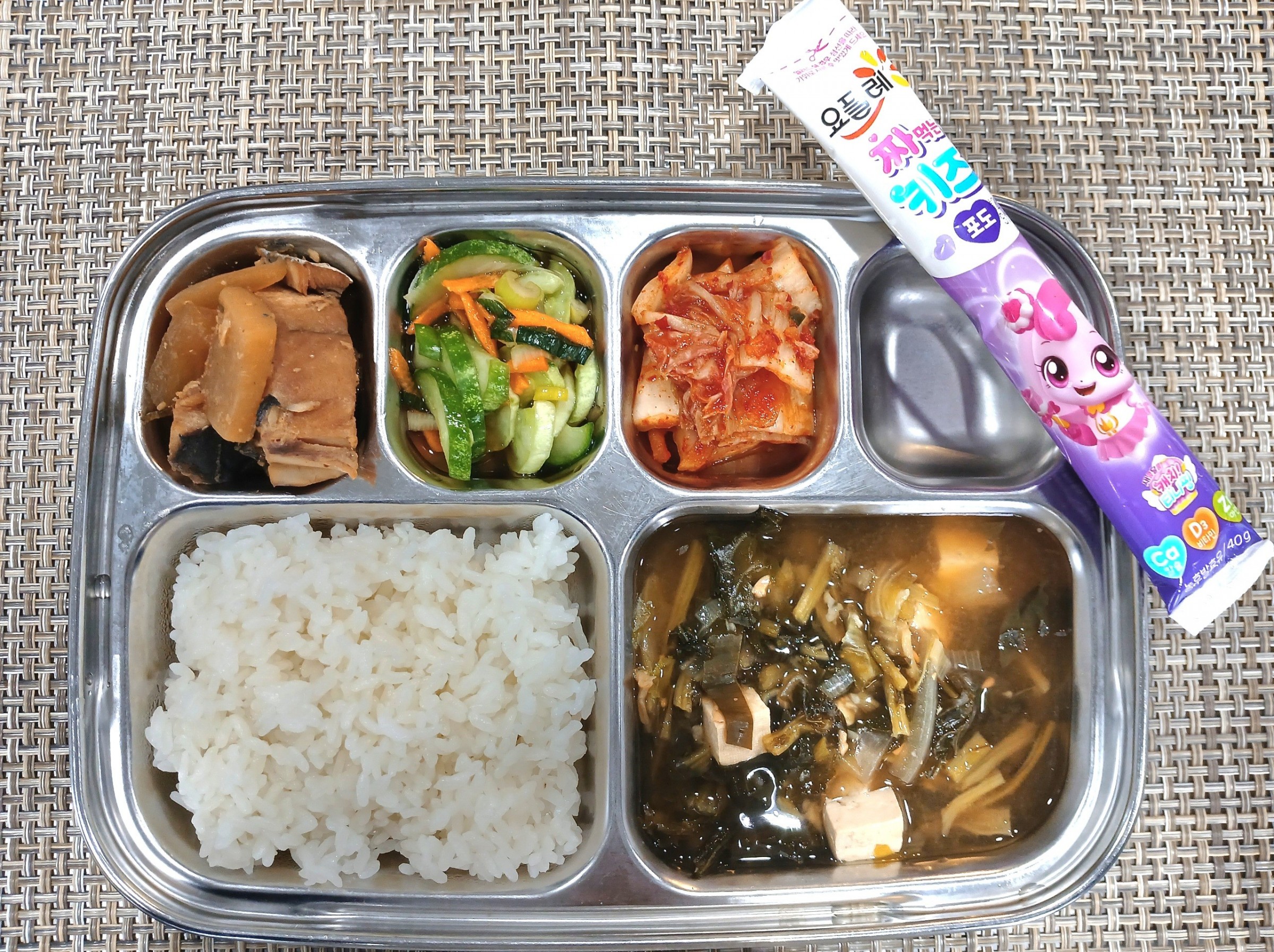 점 심 ~ 흰쌀밥, 시레기두부된장국, 순살삼치무조림, 오이초무침, 배추김치, 짜요짜요(포도)