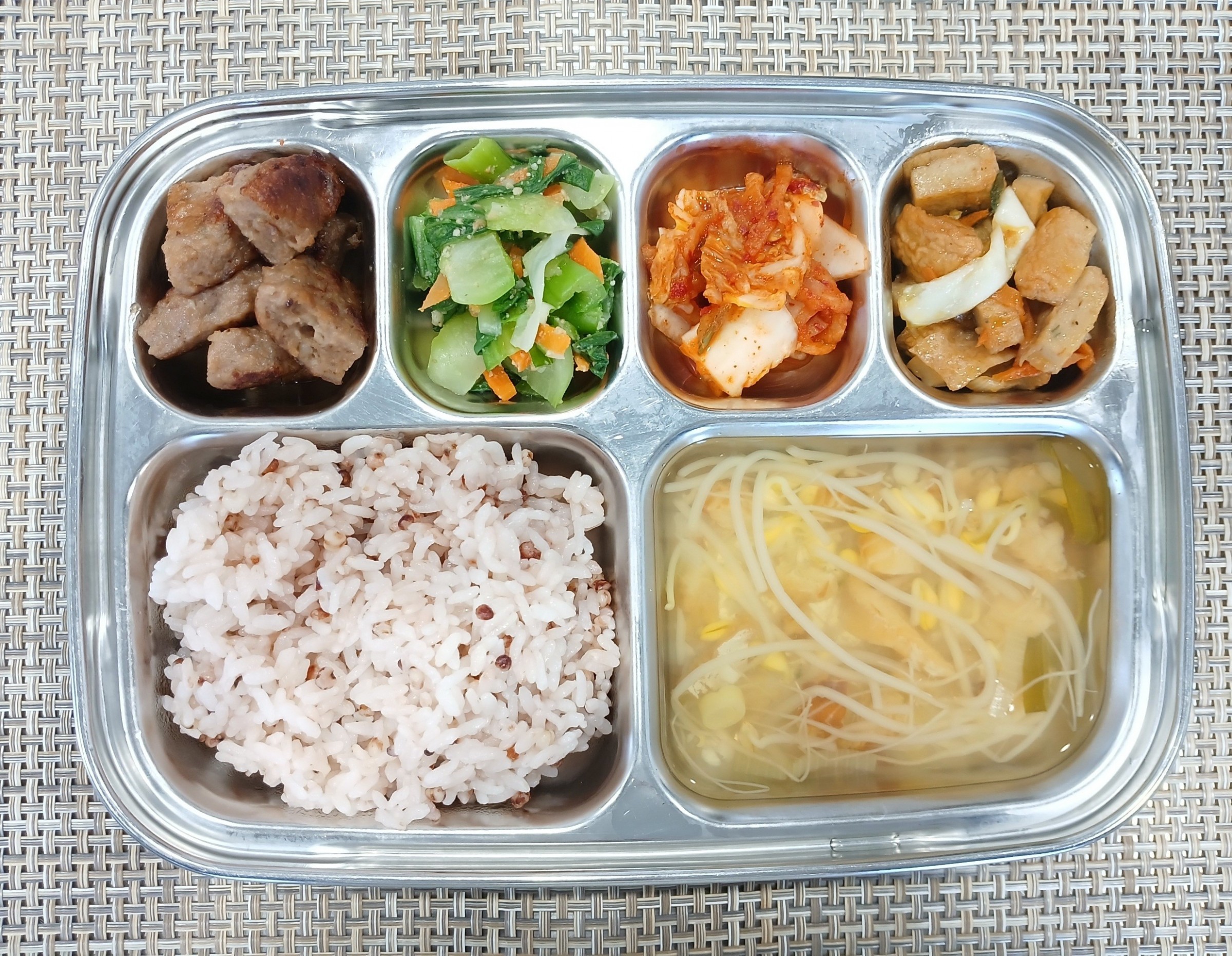점 심 ~ 수수밥, 황태콩나물국, 떡갈비, 모듬어묵볶음, 청경채나물, 배추김치