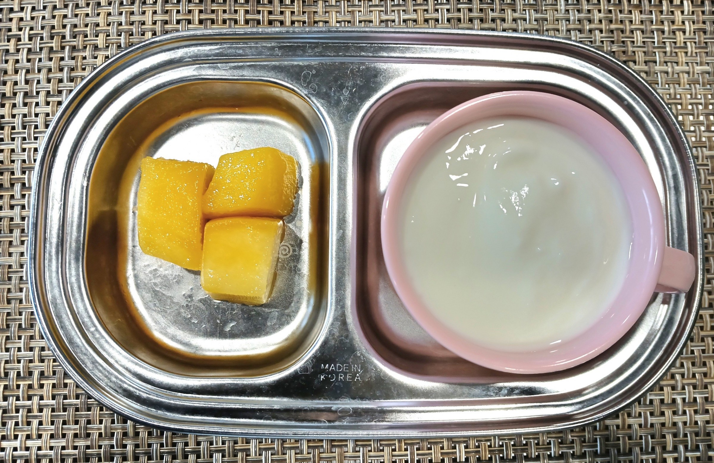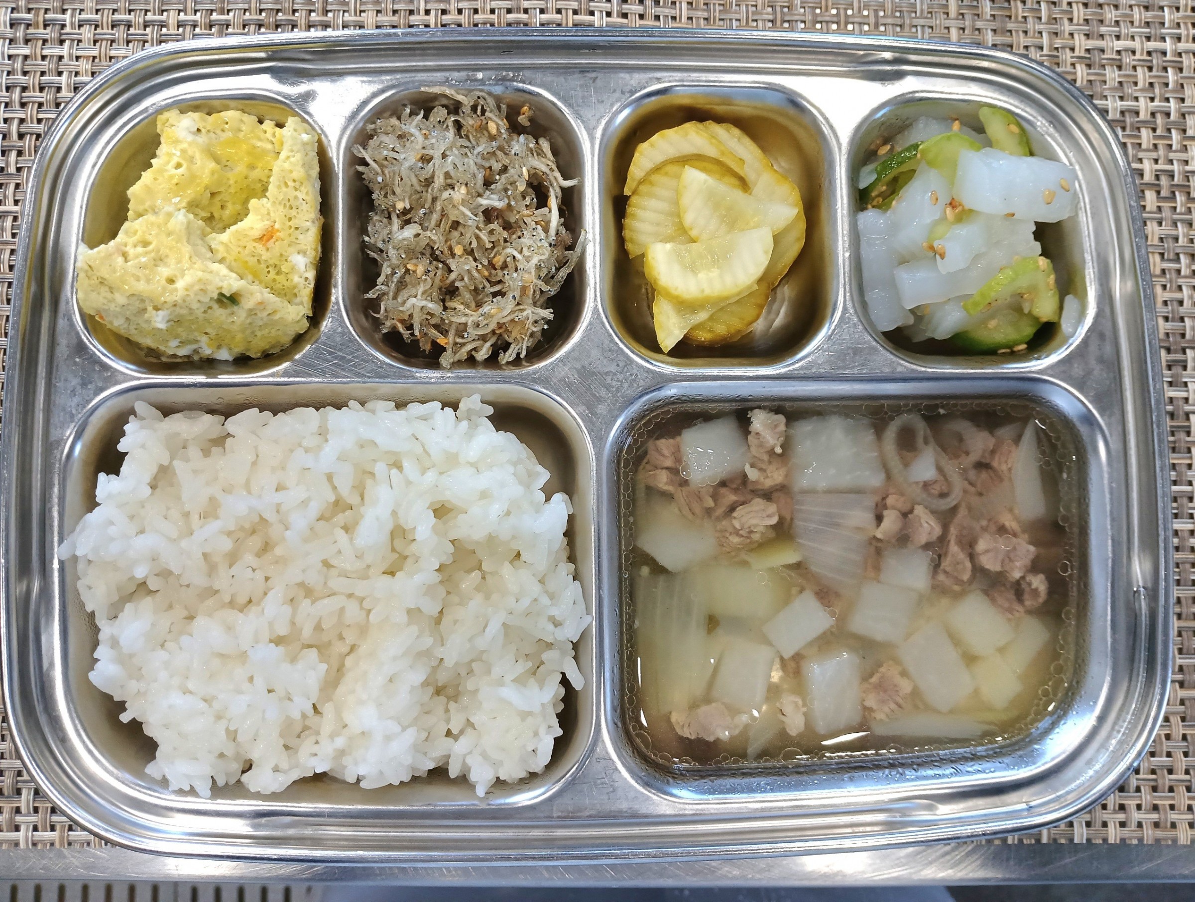 점 심 ~ 흰쌀밥, 소고기무국, 영양계란찜, 청포묵무침, 잔멸치볶음, 오이피클
