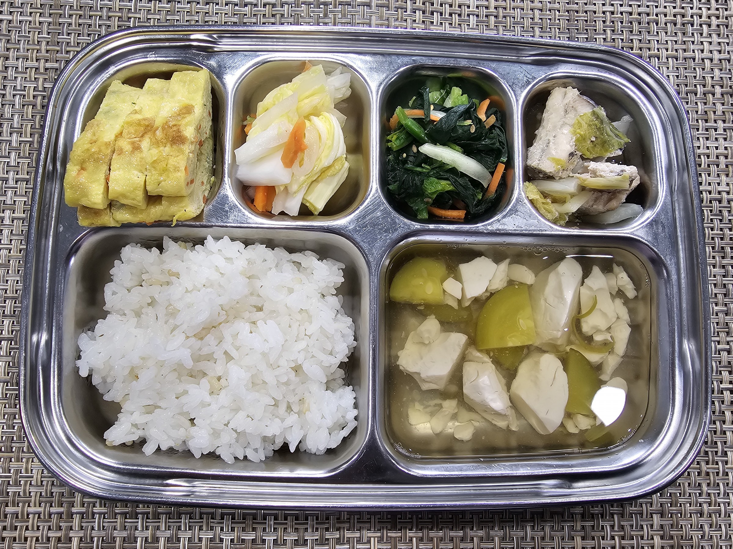 점 심 ~ 현미밥, 애호박순두부찌개, 순살삼치김치조림, 시금치나물, 야채계란말이, 백김치