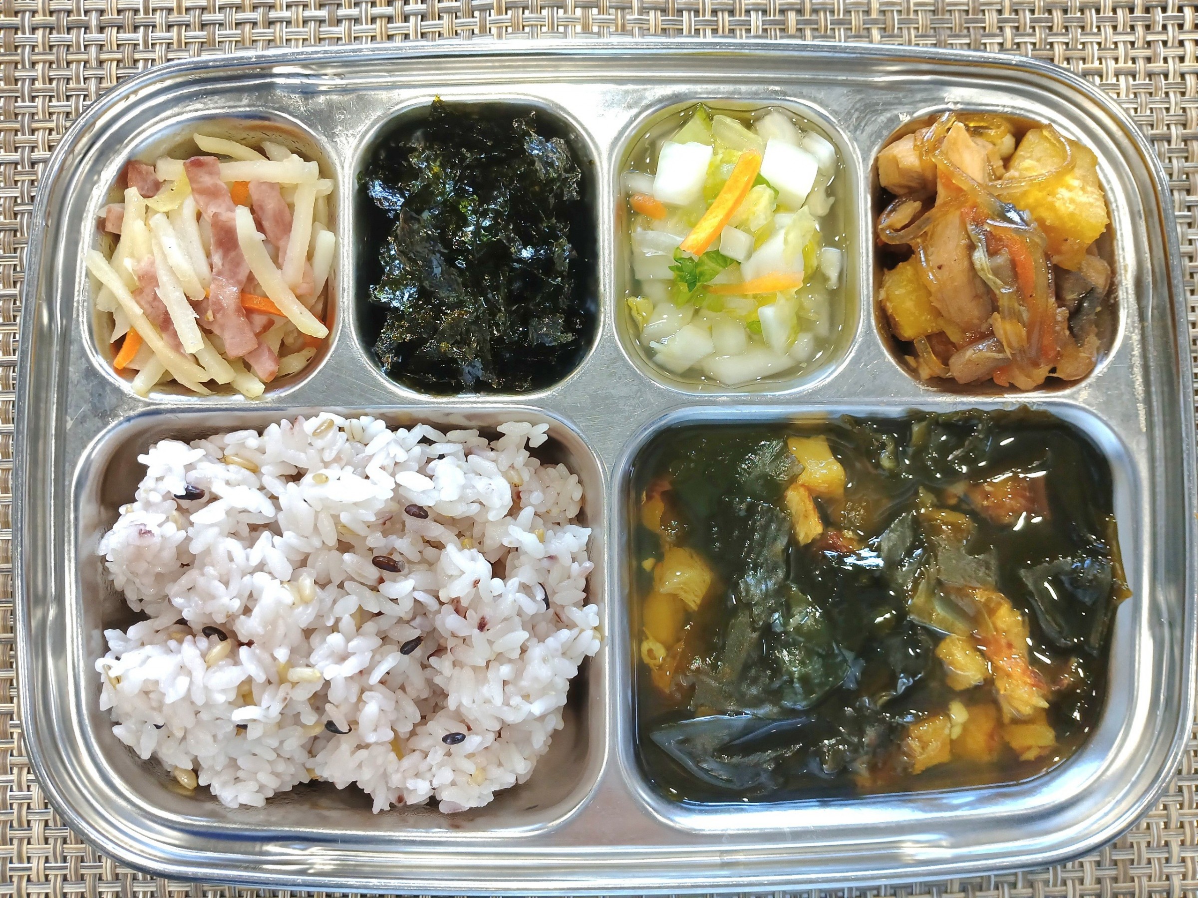 점 심 ~ 혼합잡곡밥, 황태미역국, 고구마안동찜닭, 베이컨감자채볶음, 조미김, 백김치